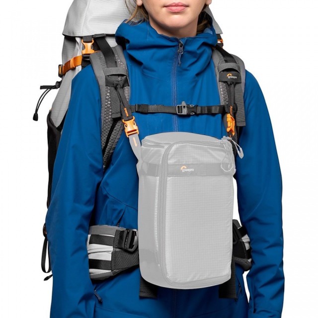 A pair of mounting connectors then allows you to attach your camera or GearUp box directly to the shoulder strap of your Lowepro backpack.