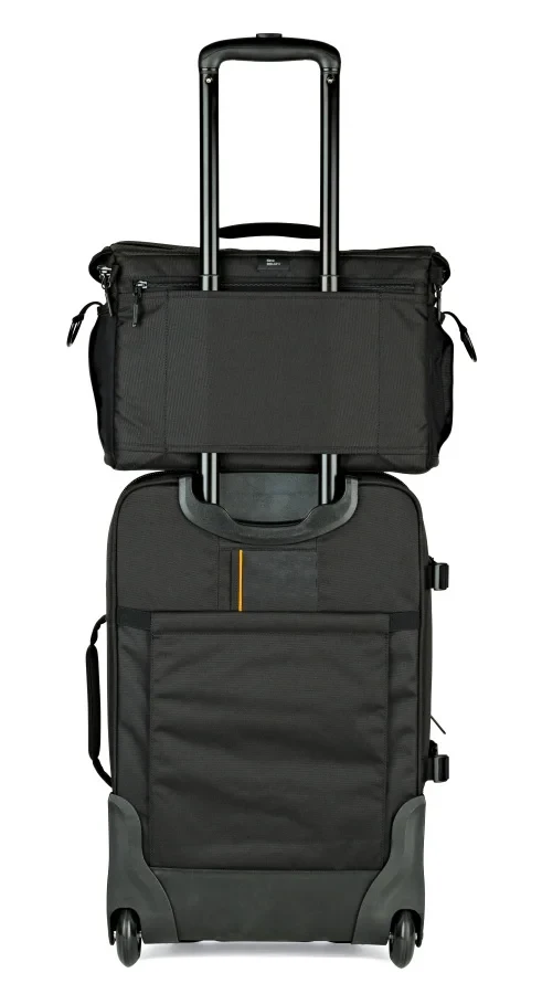 Pokud vlastníte volitelný pojízdný kufr, jako je PhotoStream SP 200, můžete využít rukáv brašny Nova pro připojení k teleskopické rukojeti většího zavazadla. To značně usnadňuje cestování letadlem a umožňuje snadné přenášení vašich fotoaparátů a objektivů spolu se zbytkem vybavení.