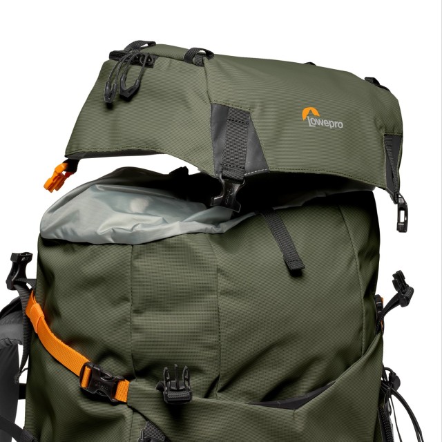 The Lowepro PhotoSport PRO 70L AW IV is a professional backcountry camera backpack designed for multi-day outdoor photography. Lightweight and made with 86% recycled fabric, it fits a CSC/DSLR with 70-200mm f/2.8 lens attached, 1-2 extra lenses, and includes space for a removable GearUp PRO XL camera insert, hydration system, and outdoor essentials.