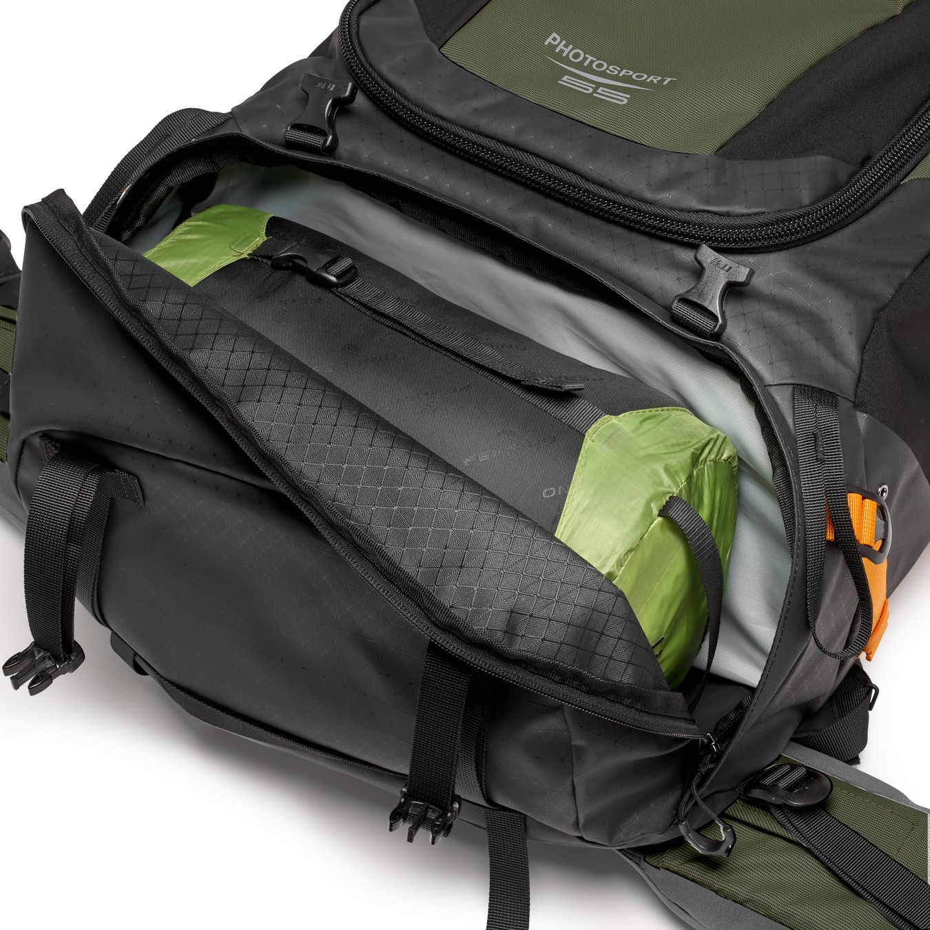 Comfort is prioritized with Medium/Large shoulder straps and the ActivLift™ harness system, featuring torso length adjustment for optimal weight distribution during long hikes. Easy front and back access to the camera insert ensures quick retrieval, while a dedicated accessory strap system allows multiple carrying configurations. Built from 100% recycled 420D Nylon Oxford and 420D Nylon Diamond Ripstop, the PhotoSport PRO 70L AW IV balances sustainability with professional durability.