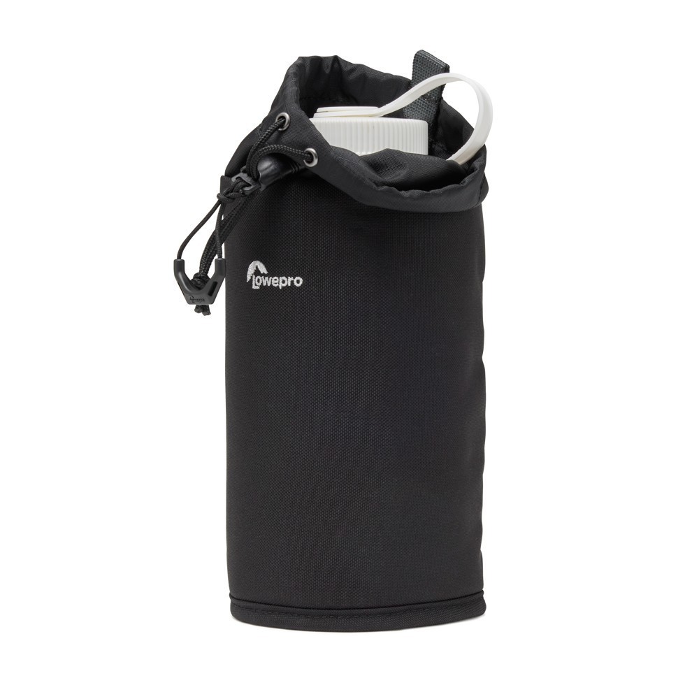 The Lowepro ProTactic Bottle Pouch III is an insulated pouch that holds water bottles up to 1 liter. It attaches to any bag or belt compatible with the SlipLock system.