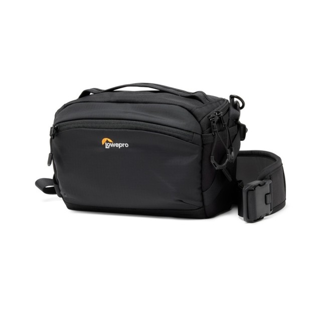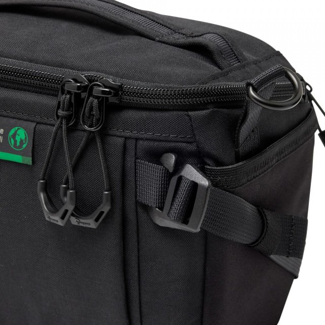 The ProTactic Lite SLX 110 AW III comes with an adjustable shoulder strap that allows for comfortable carry as a shoulder bag or crossbody sling. The strap includes a buckle with a safety to prevent accidental release and elastic loops to contain excess strap length. The bag can also be carried as a waistpack by adding the ProTactic Utility Belt III or the belt from the ProTactic BP 350 III or 450 III.