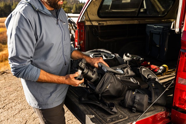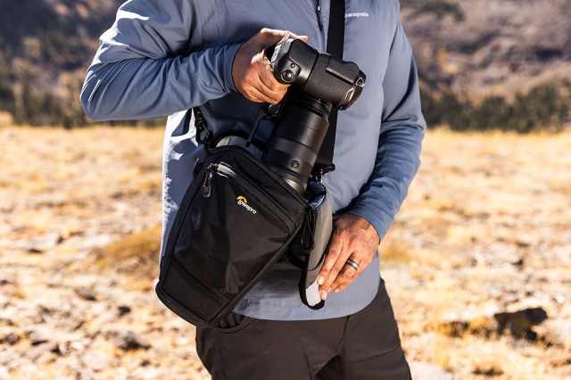 Introducing the ProTactic TLZ 75 Pro AW III, designed for the working photographer shooting events and other jobs all day, largely outdoors. This toploader is sized for a full-frame body with a portrait grip and up to a non-telescoping 70-200 f2.8 lens attached. The bag features an expansion section to accommodate a lens hood in shooting position, and the door wraps to the side for easier grip access. The quick-close buckle allows for fast access or extra security, while the interior divider holds the camera near the top for easy removal or divides the bag for a two-lens kit.