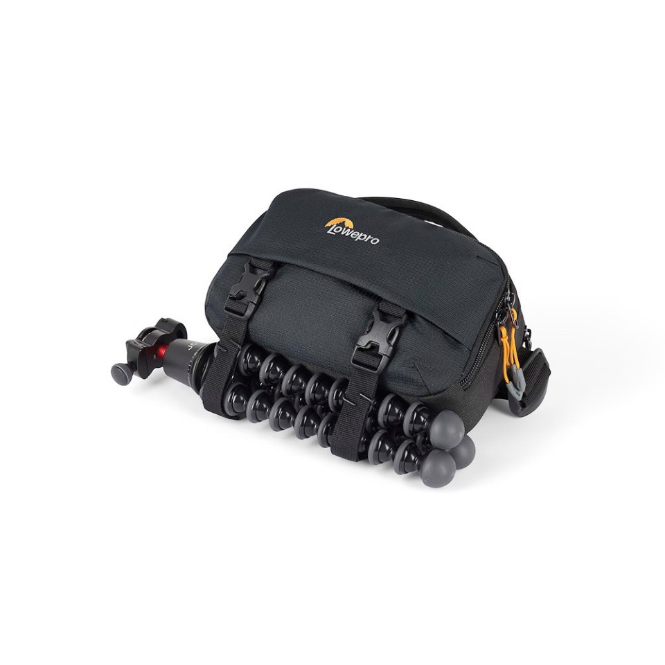 There is also space for your smartphone and other items such as snacks, sunglasses, small accessories, and a compact tripod such as the GorillaPod 3K.