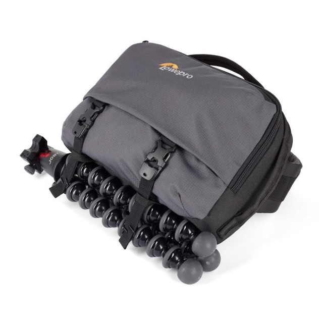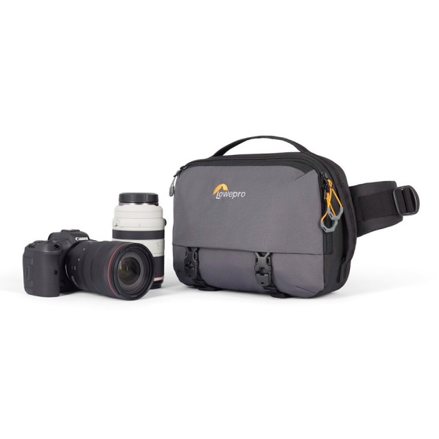 The SLX 120 includes 76% recycled and solution-dyed fabrics, to reduce water waste and negative impact on the environment . This percentage is made up of 51% recycled fabrics – Including all fabrics, webbings, bindings, zipper tape, cords and meshes, and 25% solution-dyed fabrics used to build each bag. This small camera bag is perfect for carrying all your essential pieces of kit, with plenty of handy features, whilst being environmentally friendly by creating less greenhouse gas during production and using ~80% less water. Grey is practical, versatile and great for the outdoors.