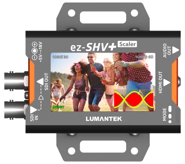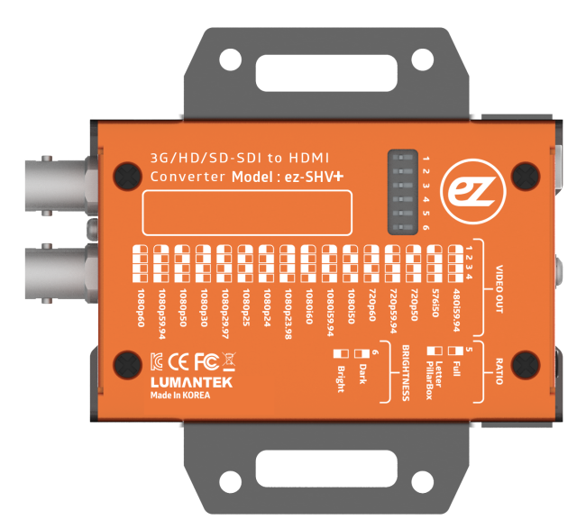 You can easily monitor I/O resolution, cable length and mesh pattern all at once. LUMANTEK ez-SHV+ has SDI LOOP output. You can monitor the incoming video through the LCD display. You can select the resolution from 480i to 1080p using the dip switch. You can also control the LCD brightness and screen ratio.