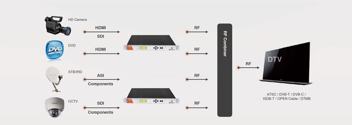 LUMANTEK HD Encodulator is HD encoder packaged with modulators in a single 1RU. Supported modulations include DTV standards such as ATSC, QAM, DVB-T, and DTMB. HD Encodulator is perfect for in-house broadcasting (MATV) since it allows cost-effective distribution within multi-storied buildings or high-density areas.