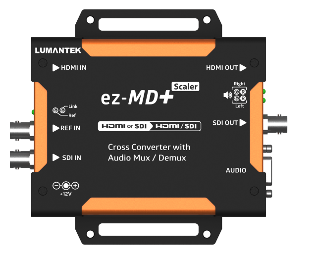 LUMANTEK’s ez-MD+ is a compact cross-converter for HDMI to SDI or SDI to HDMI. The genlock system allows synchronizing of signals to combine unpaired output signals. It supports XLR balanced audio support with audio delay controller.