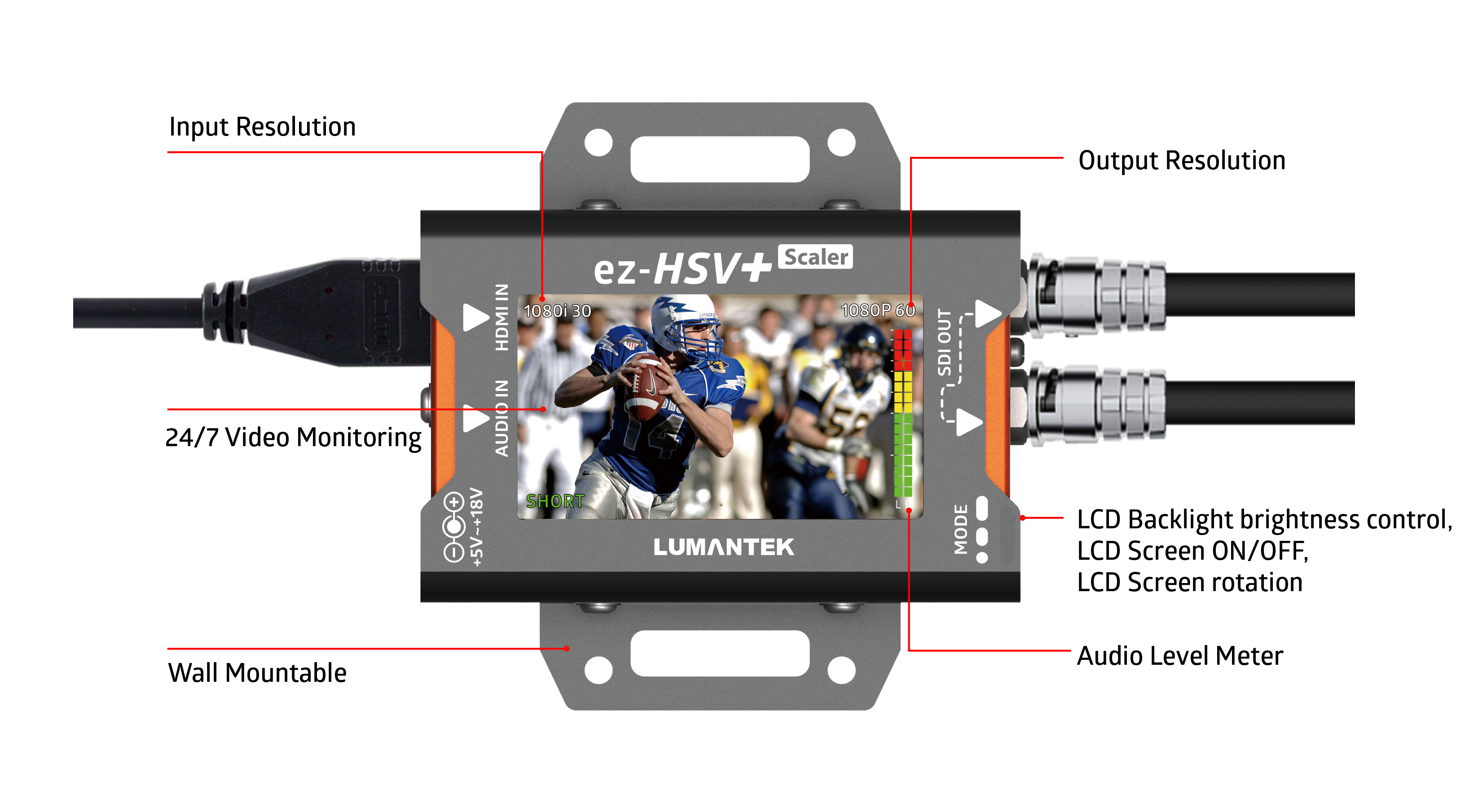 Now you can watch HDMI video with ez-HSV+. The features you can control are audio bar, incoming resolution and reduced resolution. The ez-HSV+ is also equipped with the ability to insert external audio, allowing you to plan your production schedule more conveniently.