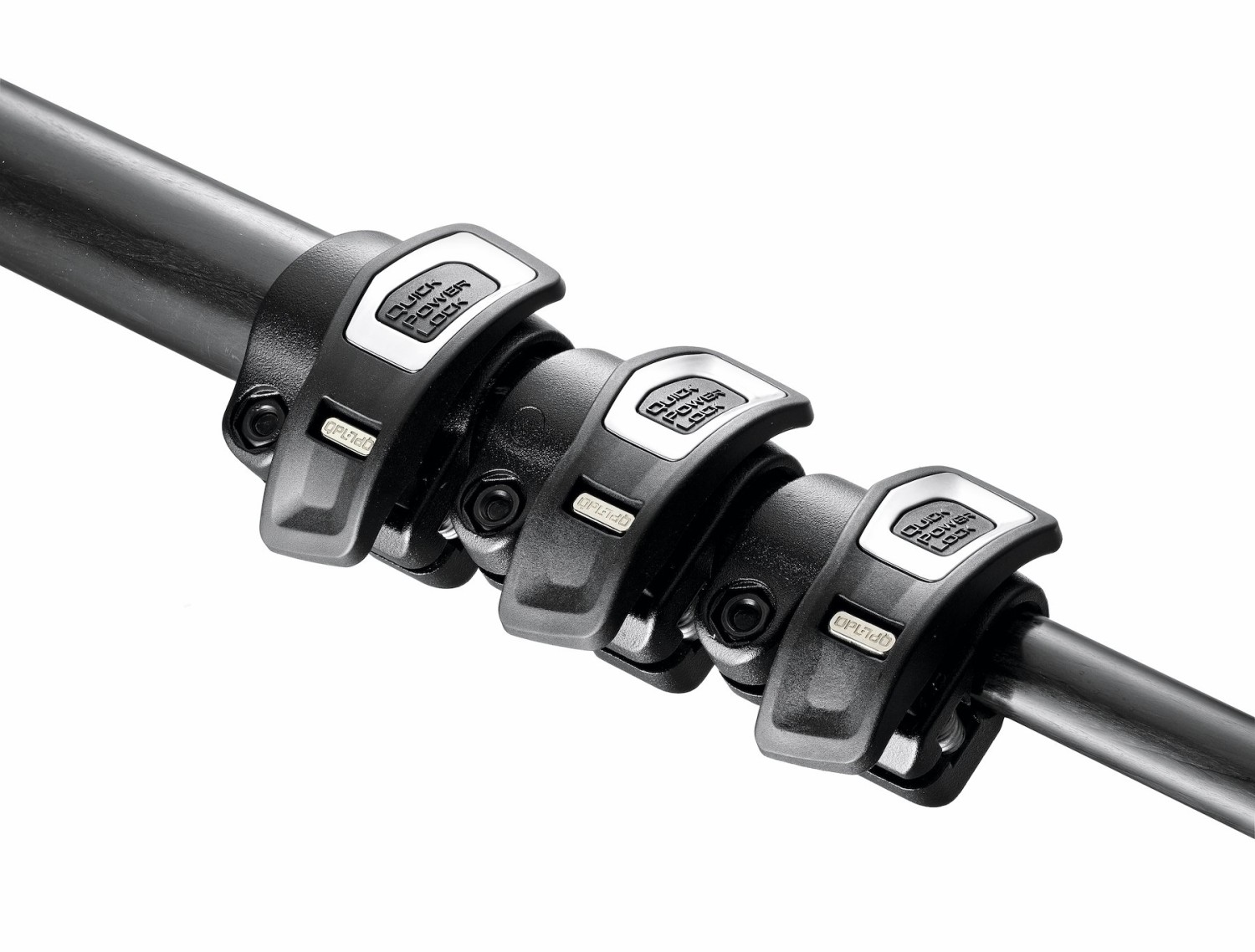 The legs of the 055XPRO4 tripod are remarkable strong, and simple to adjust and extend with the Quick Power Lock. This robust locking mechanism blocks or unblocks each leg section so they can be opened in a single movement, and features ergonomic leg angle selectors for maximum strength.