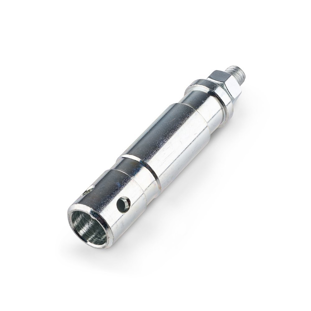 The Manfrotto 620-12 is a robust 28 mm (1-1/8") Junior male spigot adapter with M12 threaded base and 14 cm height. Made from solid zinc-plated steel, it converts any M12 female thread (common on heavy-duty lighting stands, ceiling tracks, and grip equipment) into a standard 28 mm Junior receiver stud – essential for mounting large studio lights, pantographs, or sky-track carriages.