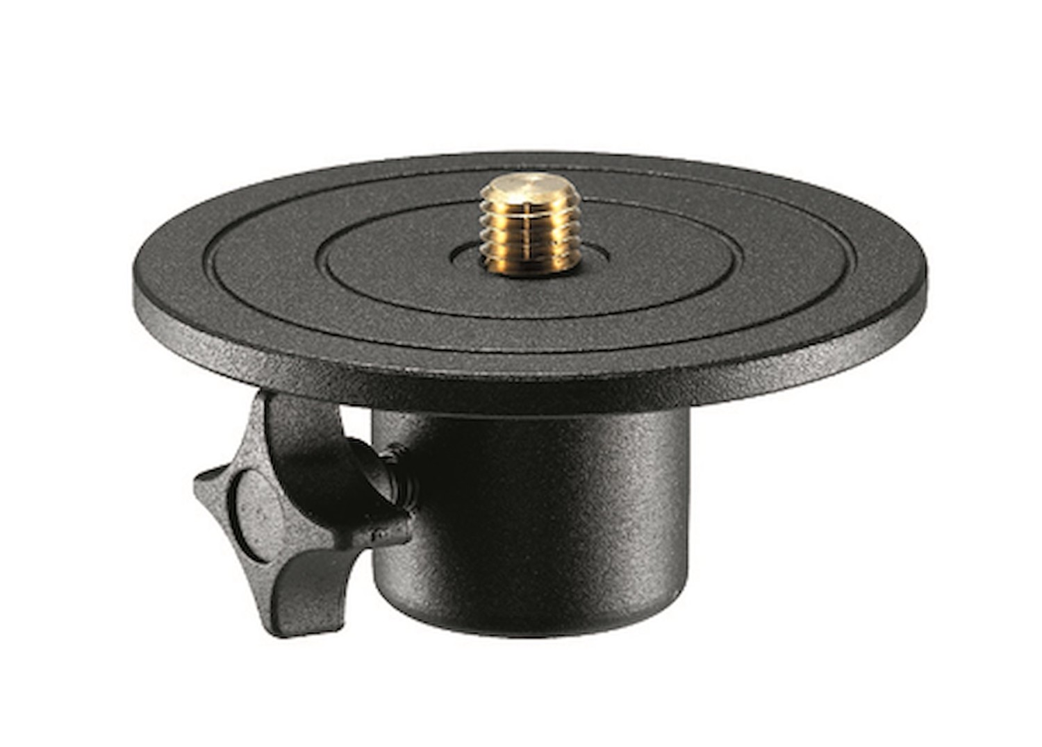 The Manfrotto 324 5/8" Survey Adapter is a 700 g aluminum two-piece converter with 3/8"-16 female base bushing and 124 mm removable top plate with 5/8"-11 male thread—transforming any Manfrotto tripod into a survey-grade mount for theodolites, total stations, or laser levels.