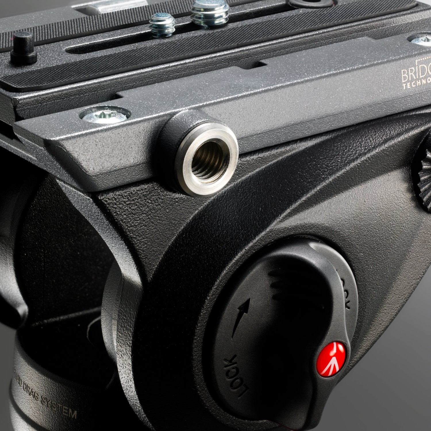 The video head has professional fluid reservoirs on both pan and tilt axes to ensure that every camera movement is smooth, controlled and precise. It is the most compact head in Manfrotto's successful Bridging Technology™ line.