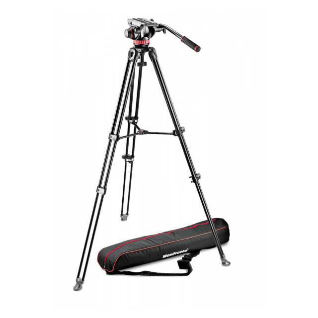 The MVK502AM-1 Manfrotto video system features a 502 fluid head with integrated 75mm hemisphere, a professional aluminum MVT502AM bipod tripod with center spacer and a practical, padded carrying bag.