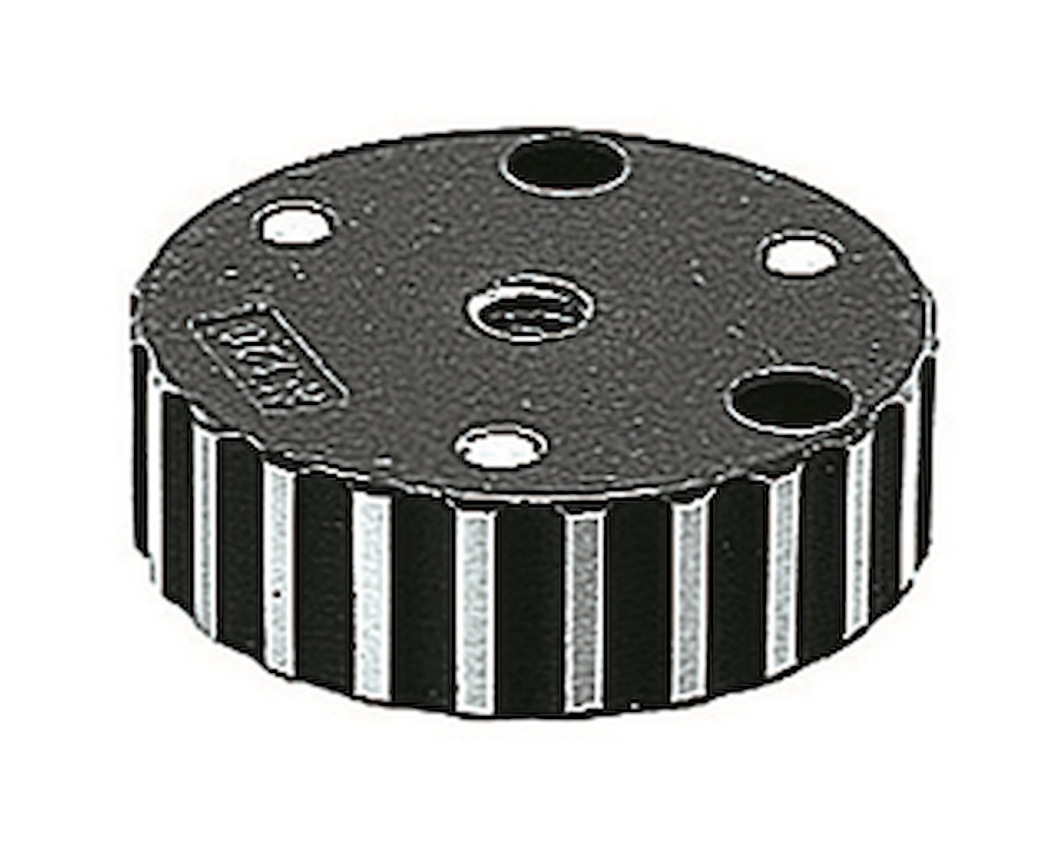 The 120DF is the official Manfrotto double-female 3/8″ adapter plate. Machined from black anodized aluminum with a large 60 mm diameter for excellent rigidity, it lets you screw two 3/8″ male threads together when you run out of thread length or need to combine accessories (e.g., attaching a 131D side arm directly to a stand’s top 3/8″ stud to create a tall lateral column, or linking two Magic Arms end-to-end). The wide base prevents twisting under load and spreads torque, making it far stronger than a simple threaded coupler.