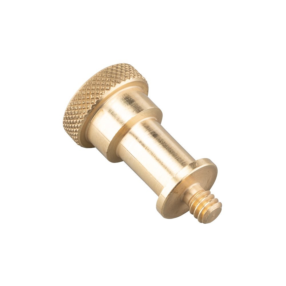 The Manfrotto 151 Adapter Stud is a compact brass adapter that converts a 5/8" (16mm) stud to standard 3/8" and 1/4" threads, ideal for securely mounting cameras and accessories.