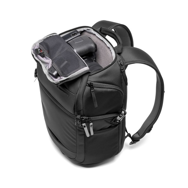 A multi-function camera and laptop Backpack for fast paced shooting. The Manfrotto Advanced Fast backpack III was designed to be extremely versatile to meet your different preference of use: double side access to main gear compartment, top access for personal items or a second camera body as you prefer, front opening to arrange easily your entire camera set up. The bag was designed to easily hold a full-frame mirrorless camera with an attached 70-200 mm f/4 along with 3 additional lenses and a flash.