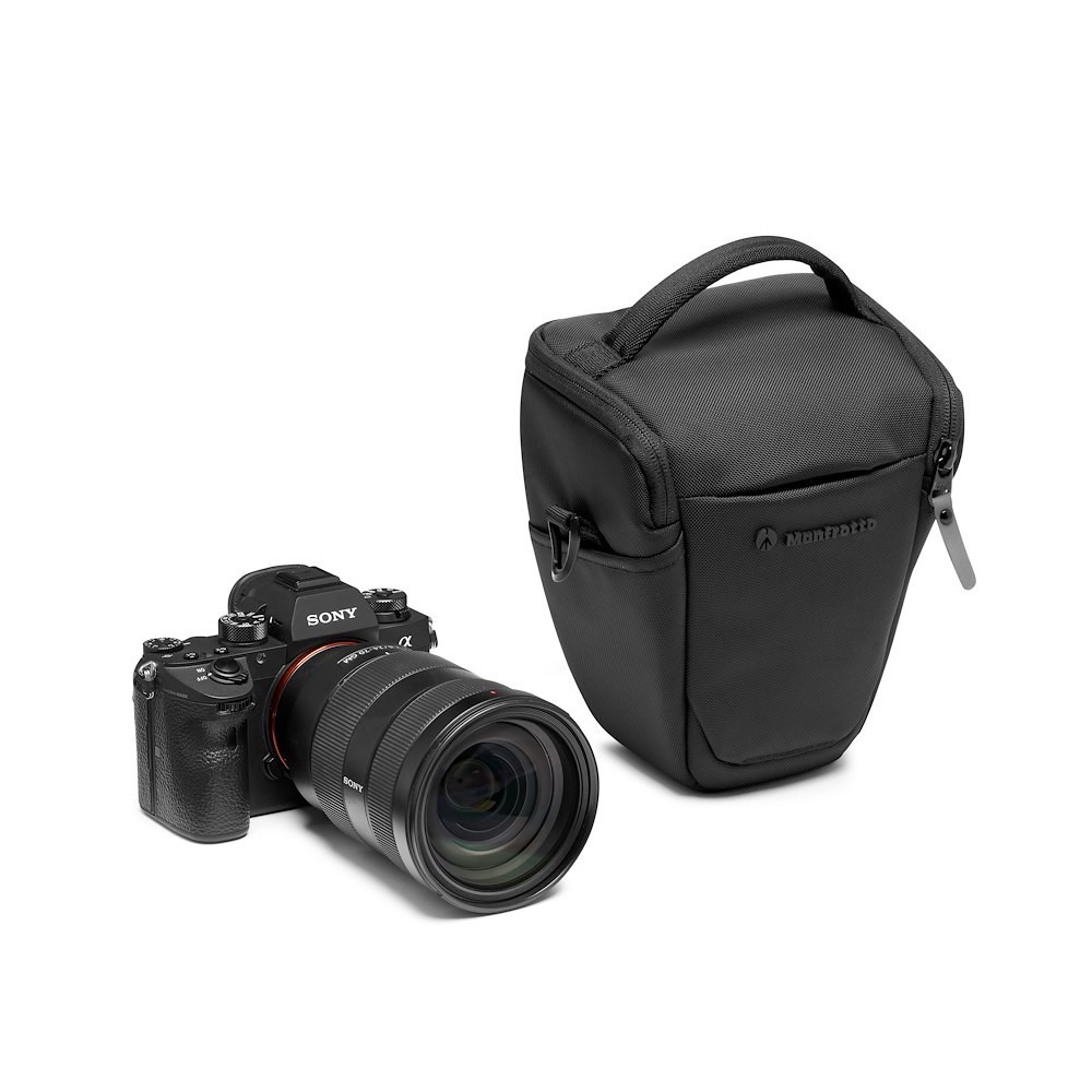 The Advanced Holster S III is a compact, top-opening holster bag designed for full-frame mirrorless cameras with a 16-35mm f/4 or medium lens attached, featuring quick-draw access, dual media pockets, front tripod connection, and versatile carry options with detachable padded straps and belt loops—all in a lightweight, water-repellent 0.27 kg, 2L package.