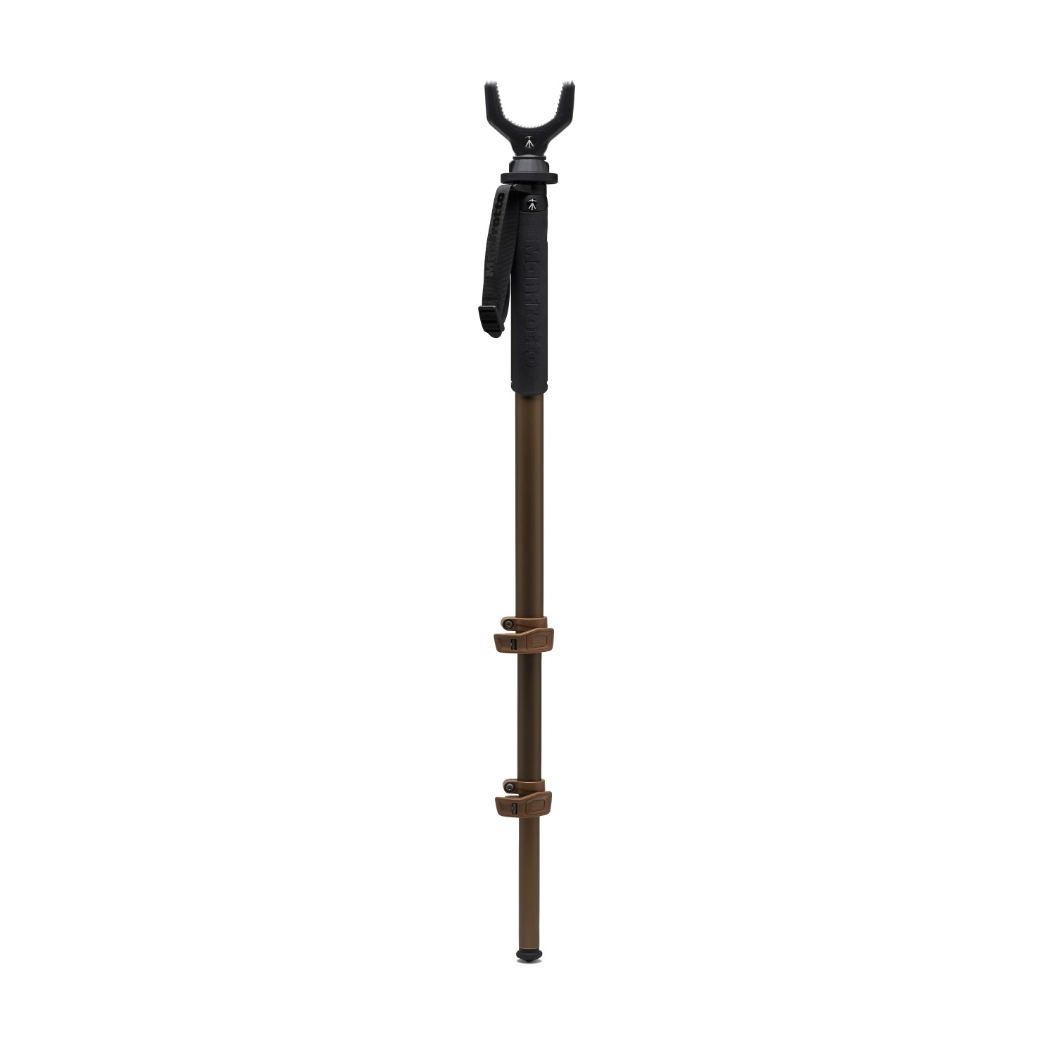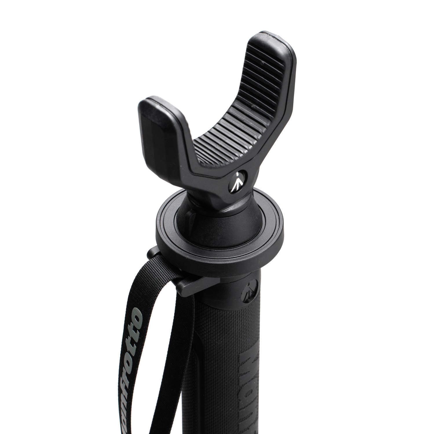 Built on Manfrotto’s proven XPRO monopod platform, the ALPHA S.H.O.T. replaces the standard wrist strap and foot with a large ergonomic V-yoke and extended rubber leg warmer, giving hunters a stable, silent rest for rifles or shotguns in any direction without changing grip. The three aluminum sections lock instantly with Manfrotto’s Quick Power Lock levers, the padded leg warmer provides firm handling even with gloves or in cold weather, and the bottom accepts Manfrotto spike feet (sold separately) for soft ground. Ideal for stalking, stand hunting, or driven shoots where speed and stability are critical.