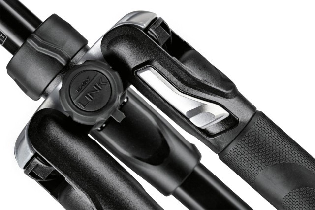 Na vrchní části nohou je k dispozici Easy Link, který umožňuje připojení volitelného příslušenství, jako jsou blesky nebo reflektory. To vám umožňuje použít stativ jako podpůrný systém a snížit množství vybavení, které musíte při cestování nosit. Pogumované nožičky zabraňují klouzání a pomáhají udržet Befree GT stabilní na většině typů terénu. Stativ je kompatibilní s montážními závity 1/4"-20 a 3/8"-16, díky přiloženému adaptéru, který umožňuje přepínání mezi dvěma velikostmi závitů.