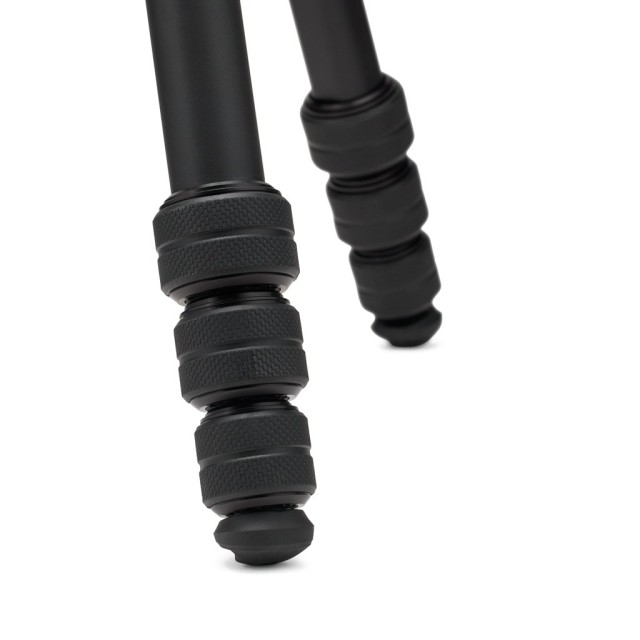 Its 4-section legs feature twist-lock mechanisms for quick setup and adjustments, while independent leg spreads and continuously adjustable leg positions allow for versatile positioning on uneven terrain. The tripod includes a center column for added height flexibility and a 3/8"-16 male head mount for compatibility with a wide range of tripod heads and accessories. Rubber feet ensure firm grip on any surface, and the folded length of 16.9" makes it highly portable for travel.