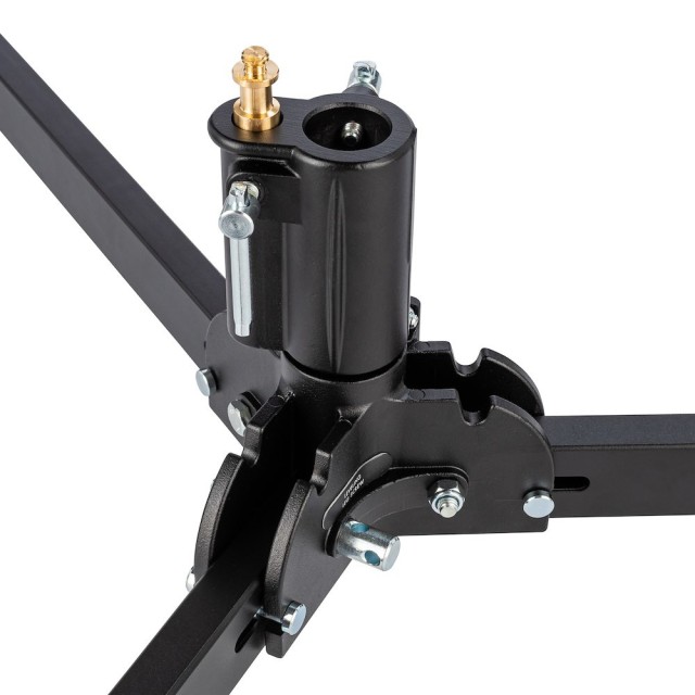 The Manfrotto 297BBASE Black Large Brake Base is a professional-grade studio accessory engineered to offer robust stability for lighting stands, columns, and other studio equipment. Featuring a large footprint of 100 cm, it ensures superior balance and security, while the single leveling leg allows precise adjustment on uneven surfaces. Equipped with braked wheels, the base enables smooth positioning and safe locking in place, combining mobility with reliability.