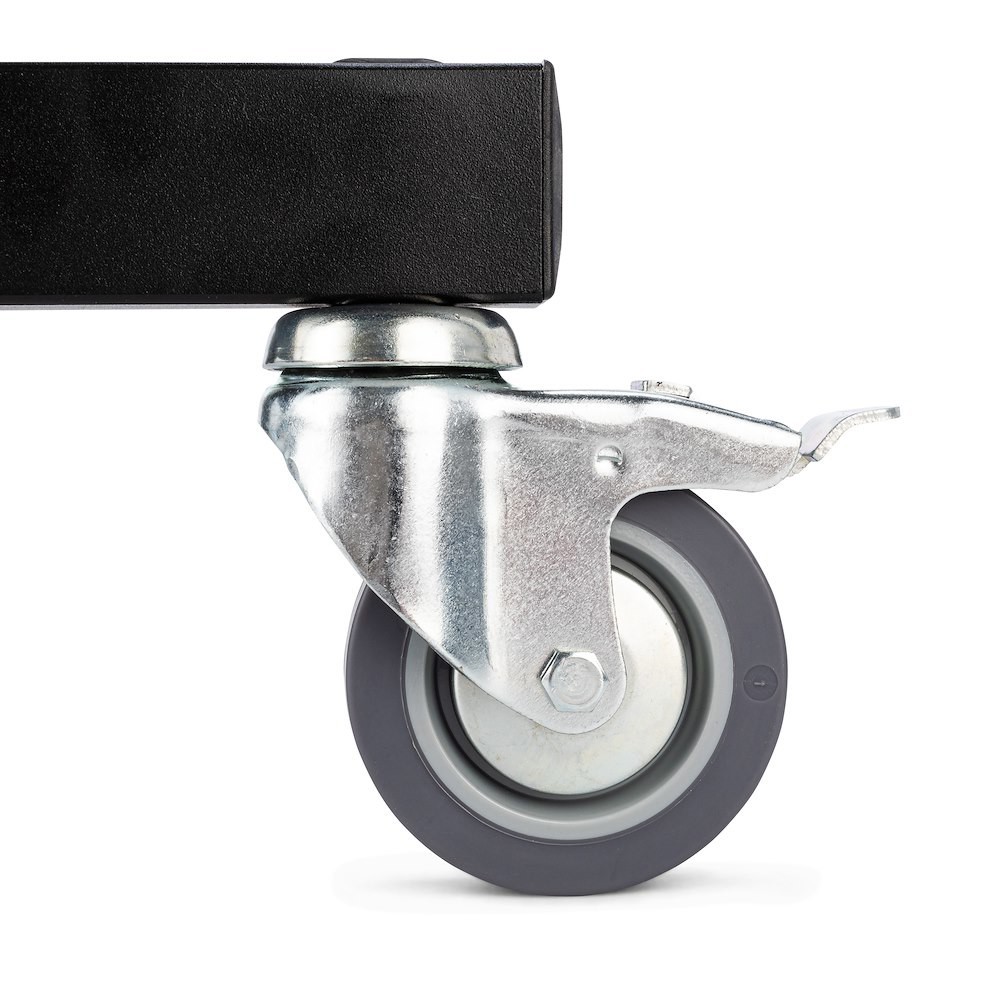 The Manfrotto 297BBASE Black Large Brake Base is a heavy-duty studio base with braked wheels and a leveling leg, designed to provide maximum stability for lighting and support equipment up to 40 kg. With a minimum and maximum height of 28 cm, this base provides a low, stable center of gravity, ideal for demanding studio setups.