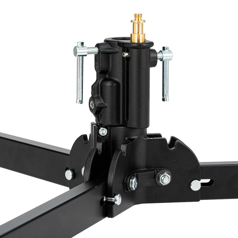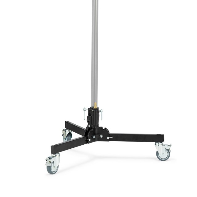 The Manfrotto 299BBASE is the professional small rolling brake base designed specifically for backlight and low-angle lighting setups. Its robust black steel construction supports up to 40 kg while keeping the center of gravity low (28 cm height), making it perfect for large softboxes, heavy fresnels, or boom arms used as backlights. Simply insert any standard 28 mm (Junior) or 16 mm (Baby) column to create a custom rolling stand in seconds.