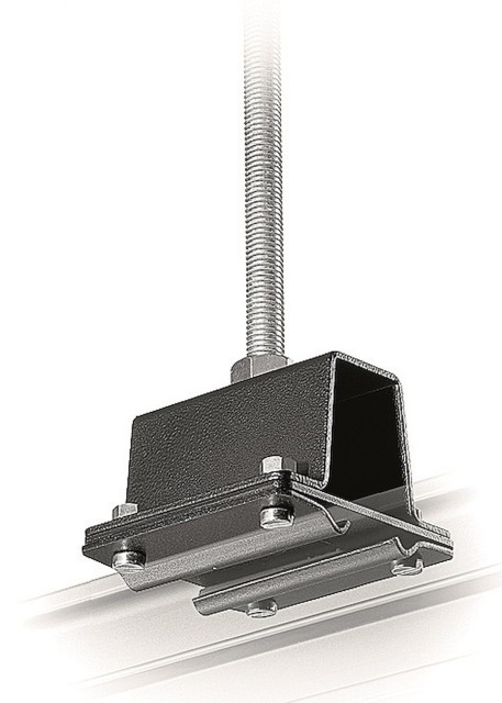 The Manfrotto FF3214A is a heavy-duty threaded ceiling mounting bracket (without rod) for the Sky Track / Top System FF6000 overhead rail system. Designed to be screwed or threaded directly onto ½″ (12–13 mm) rods or bolts, it allows precise height and leveling adjustment via double nuts and provides a rock-solid anchor point for suspending 4 m fixed rails in professional studios.