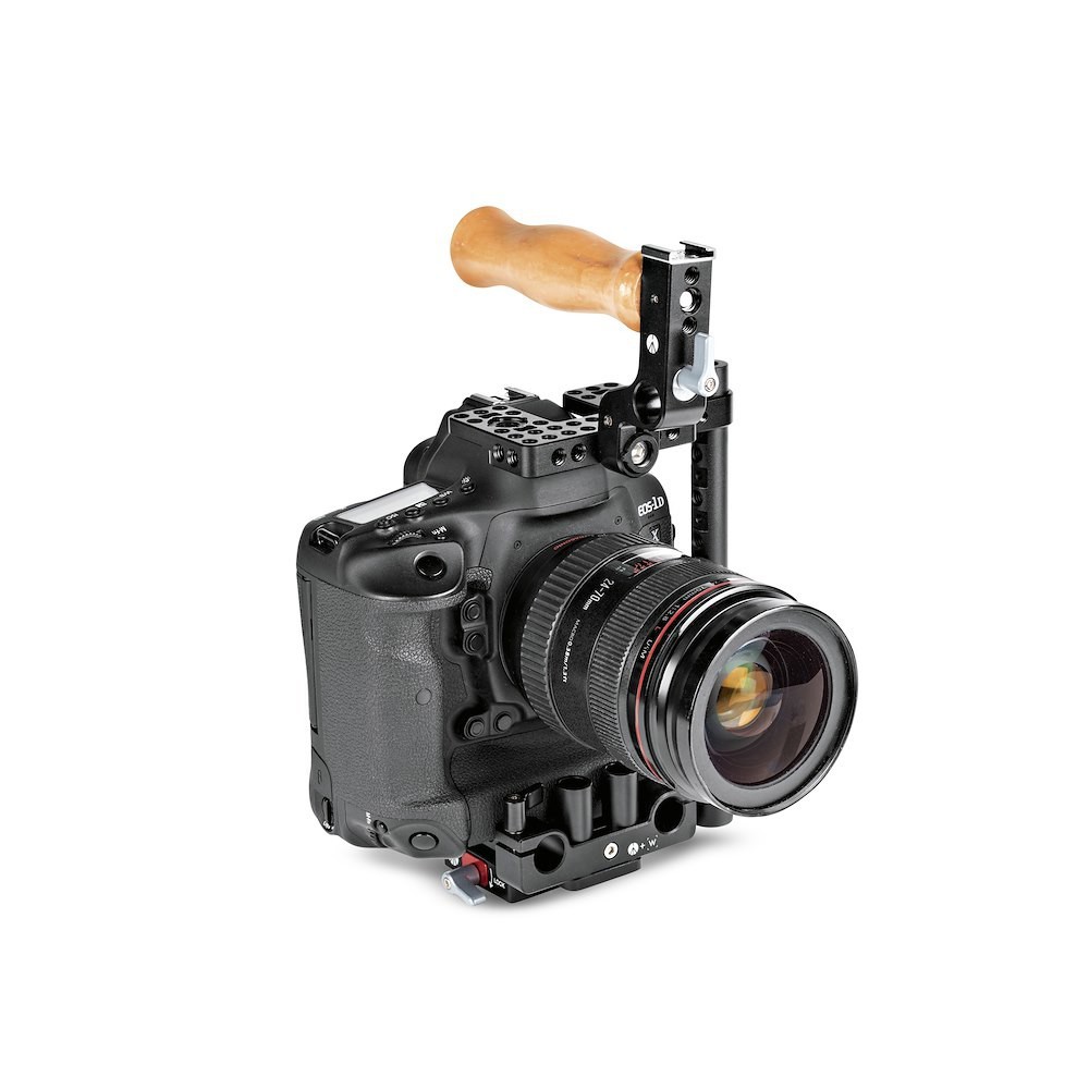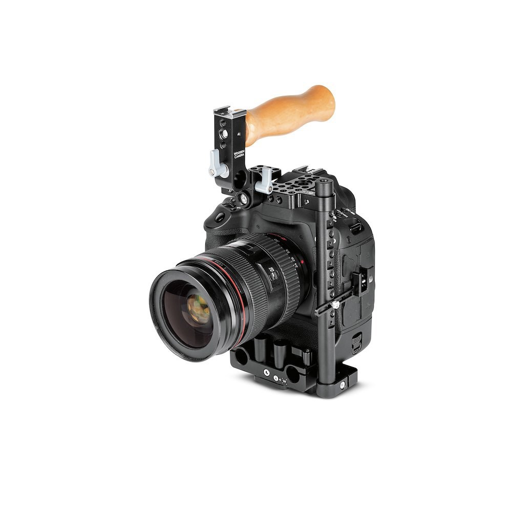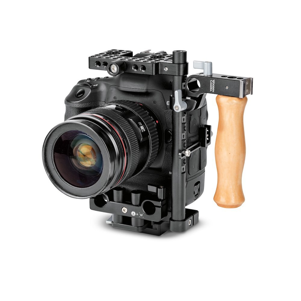 The Manfrotto MVCCL Camera Cage for Large DSLR Cameras provides a professional solution for filmmakers and photographers who use large DSLR or mirrorless cameras, including Canon 1DC, 1DX series, Nikon D3X–D5, D800*, D810*, D850, and cameras with battery grips like the Sony Alpha series or Fujifilm X-H1.