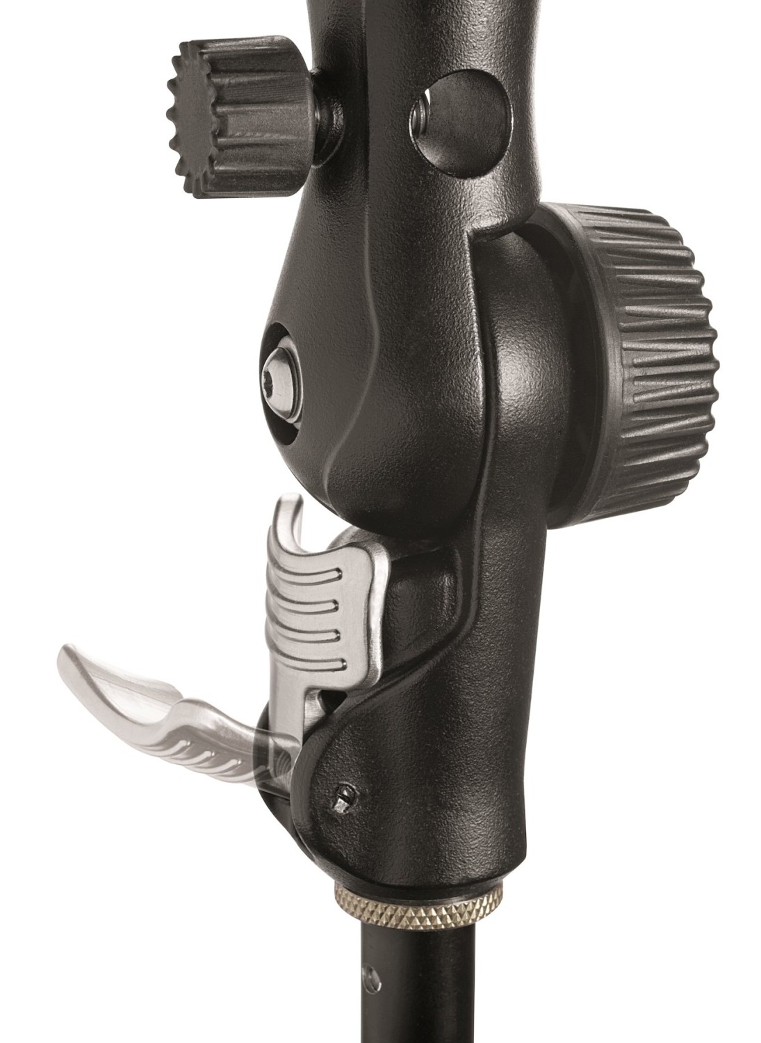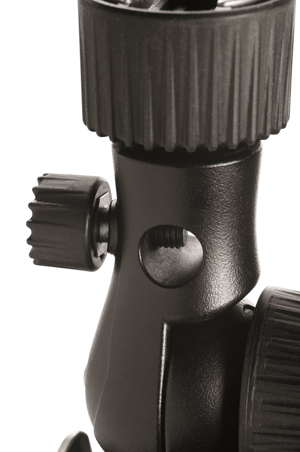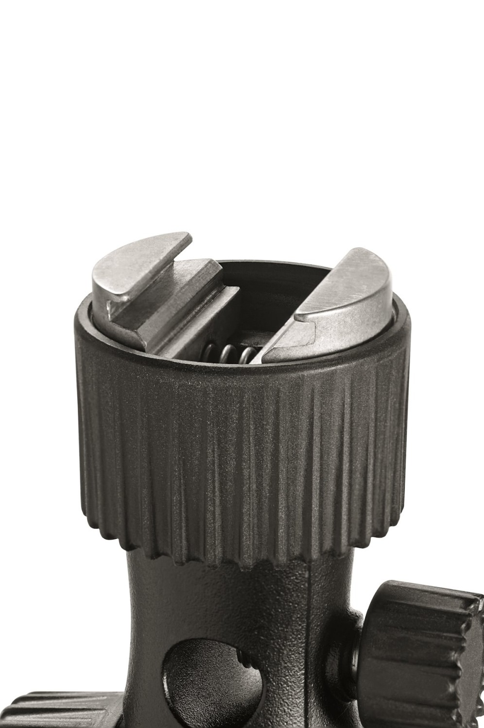 The Manfrotto MLH1HS-2 Snap Tilthead delivers precise off-axis lighting in a 12.5 cm, 200 g package. The cold shoe accepts standard flash feet or LED panels, while an integrated umbrella channel (8 mm) holds reflectors or shoot-throughs. A patented balancing ring counteracts forward tilt under load, and the oversized locking knob freezes the angle from -90° to +90° with zero creep. The 5/8" female socket locks onto any baby stand or grip head, making it perfect for hair lights, rim lights, or product tabletops. Black anodized aluminum ensures durability and glare-free studio work.