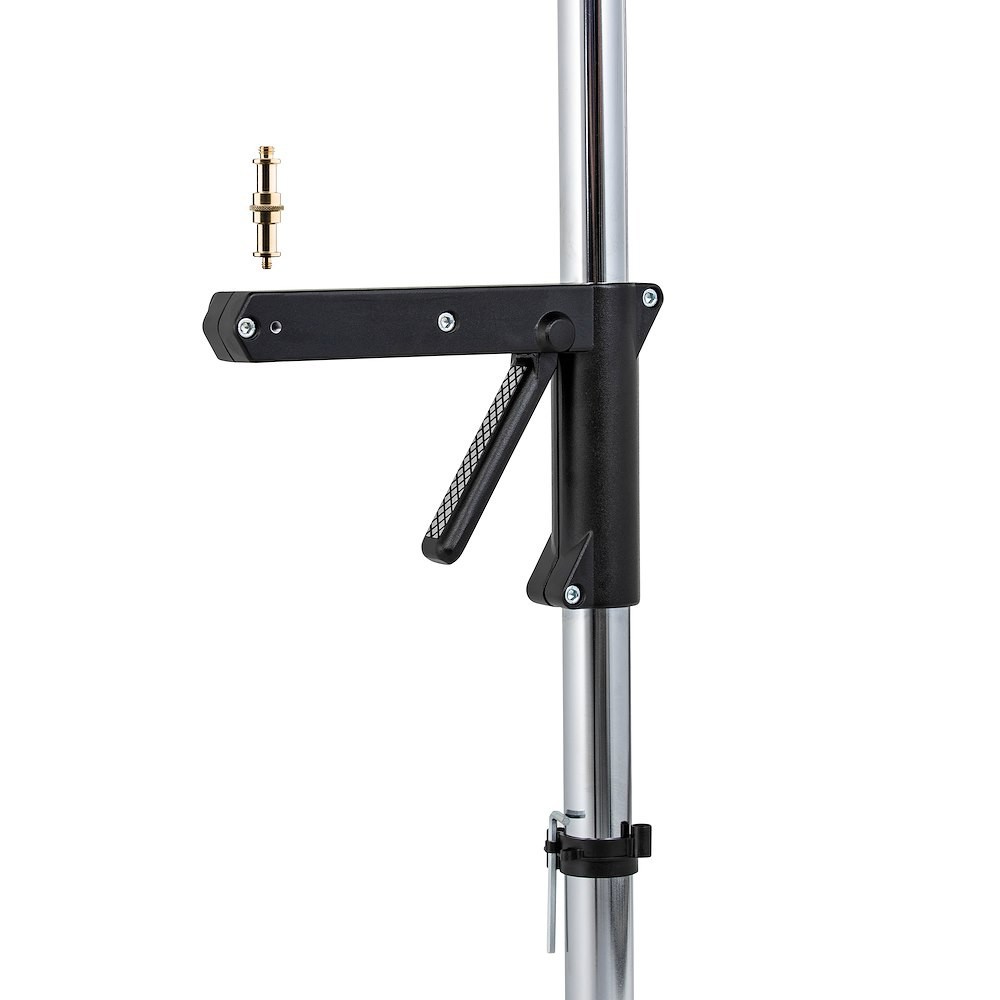 Designed with portability in mind, the stand includes lockable wheels for smooth repositioning in the studio and a removable base for easy storage and transport. The compact design, combined with rectangular leg sections and a leveling leg, ensures stability on any surface. Reaching heights from 35 cm up to 250 cm, the Manfrotto 231CS offers flexible positioning for a variety of lighting setups.
