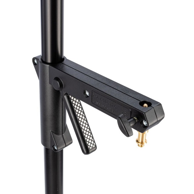 The Manfrotto 231B is the ultimate mobile column stand for busy studios and location work. Its innovative design features a wheeled cross-base that completely detaches from the 35 mm black aluminum column for compact storage and transport, yet locks rigidly in seconds when needed. Built with a steel base and aluminum column, it safely supports 8 kg when used near minimum height and 2 kg at full extension. The top spigot offers 5/8″ (16 mm) Baby stud and socket plus both 1/4″ and 3/8″ threads for total compatibility.