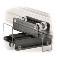 The Manfrotto FF3232 is the carriage that makes Sky Track moving rails actually move. Its upper set of wheels rides inside a fixed ceiling rail while the lower set supports a perpendicular mobile rail, creating seamless bidirectional travel. Precision-machined nylon wheels with metal bearings run whisper-quiet and support heavy loads without binding. Multiple FF3232 carriages are typically used every 1–2 m along moving rails to ensure smooth, stable operation in permanent studio installations.