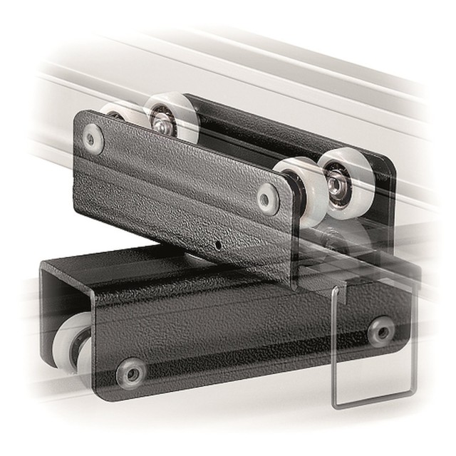 The Manfrotto FF3236 is a double sliding carriage designed for SkyTrack and studio setups, featuring a single brake for controlled movement. Its versatile design allows mounting on either the fixed or mobile rail to manage sliding operations effectively, making it ideal for precise positioning in professional photography or video setups.