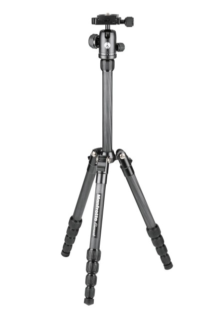 The Manfrotto MKELES5CF-BH Element Traveller Small Tripod with Ball Head is an ultra-portable 1.05 kg travel kit that folds to 32 cm, extends to 143 cm and supports 6 kg CSC payloads with a smooth aluminum Arca-type ball head, independent 360° pan lock, twist-lock legs, three leg angles, and a telescopic center column—complete with padded carry…