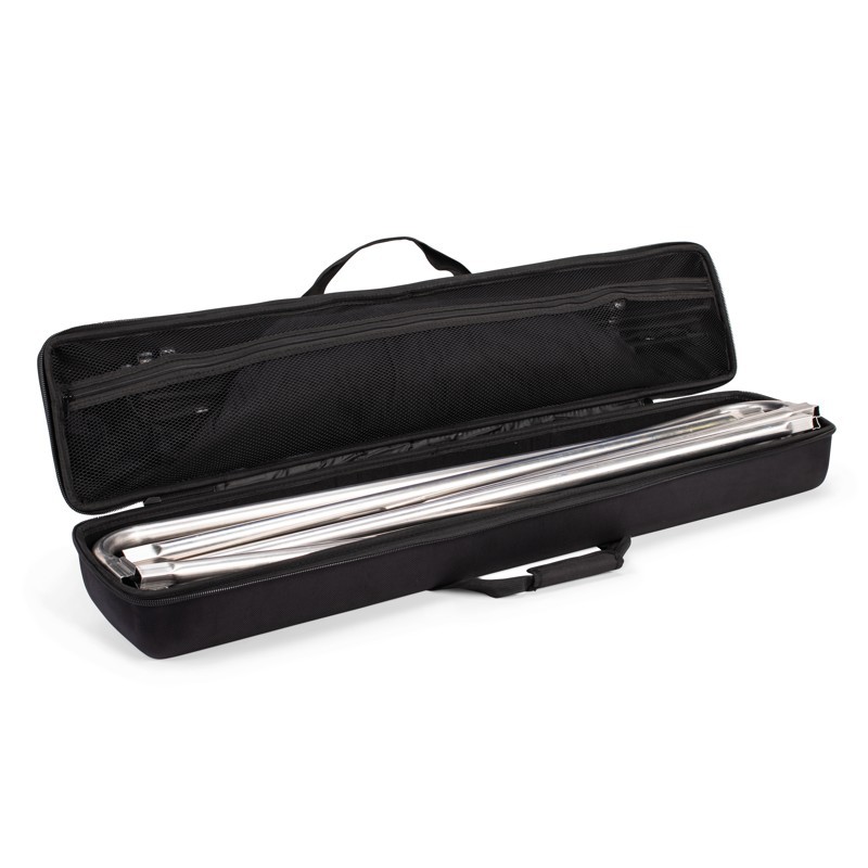 The EzyFrame backdrop measuring 2 m x 2.3 m (6.5' x 7.5') is a large-format folding background that provides much more space for photography than a standard 1.5 m x 2.1 m (5' x 7') pop-up folding background, while remaining highly portable thanks to its compact size and sturdy carrying case.