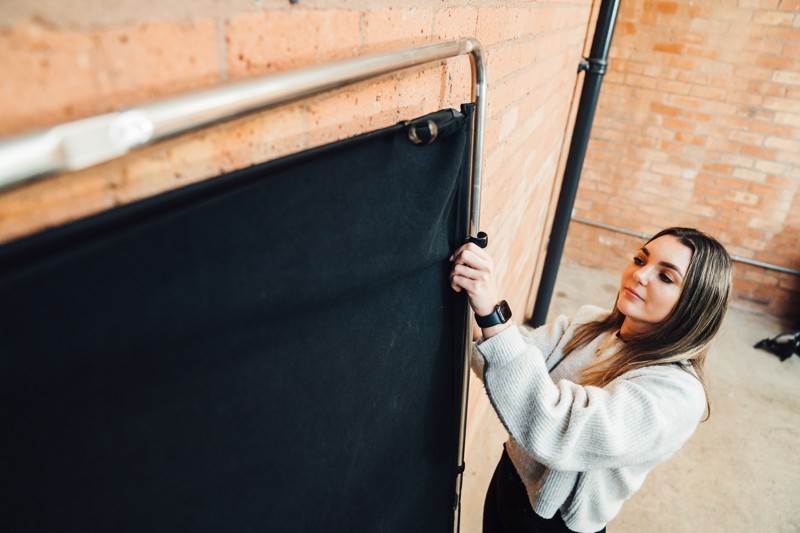 Separate covers with different colors and surfaces are also available, allowing the user to easily change the background at any time. EzyFrame Background covers have a small 15 cm (6") skirt at the bottom edge that covers the aluminum frame and allows the user to combine the background with the desired floor surface when photographing full-length figures.