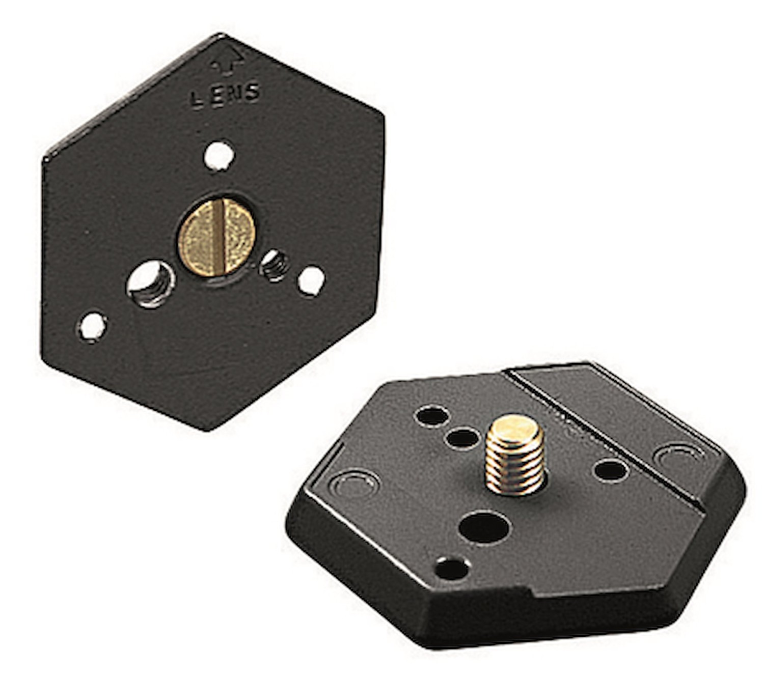 The Manfrotto 030HAS is the original aluminum hexagonal QR plate created for Hasselblad series and similar medium-format cameras that feature dual 1/4" and 3/8" tripod threads. It comes with both a 1/4"-20 and a longer 3/8"-16 screw, so you can choose the correct one for your camera body. The classic hexagonal shape locks positively into any Manfrotto RC0-type head, preventing rotation and ensuring perfect alignment every time.
