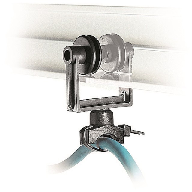 The FF3226 set of five dedicated cable carriages. Each lightweight carriage slides directly into the lower channel of the rail (no wheels required) and glides silently as your pantograph or light moves, preventing cables from dangling, swinging, or snagging. Perfect for studios running multiple lights on overhead tracks, these durable polymer runners support standard cables of any reasonable thickness and are the factory-recommended solution for clean, safe cable management in broadcast, photographic, and video production environments.