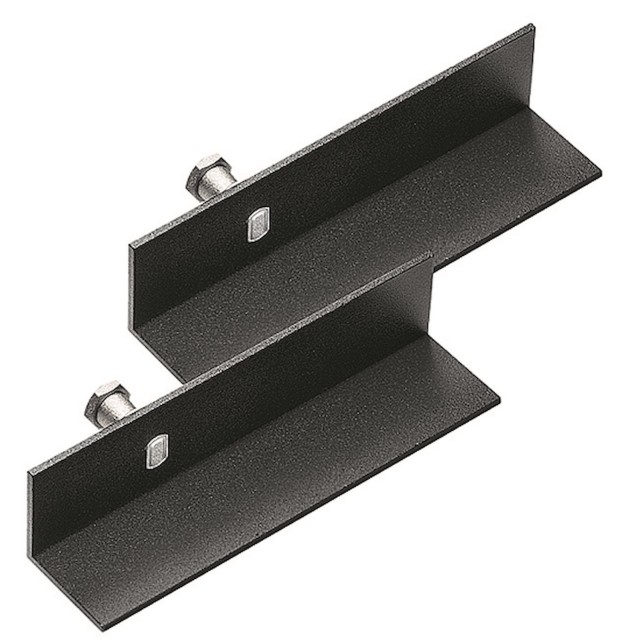 The Manfrotto 041 is a set of two 17 cm black L-bracket shelf holders with 16 mm hex studs, designed to pair with Super Clamp 035—delivering instant, tool-free shelving for glass, panels, or plexi in a lightweight 290 g studio rigging kit.