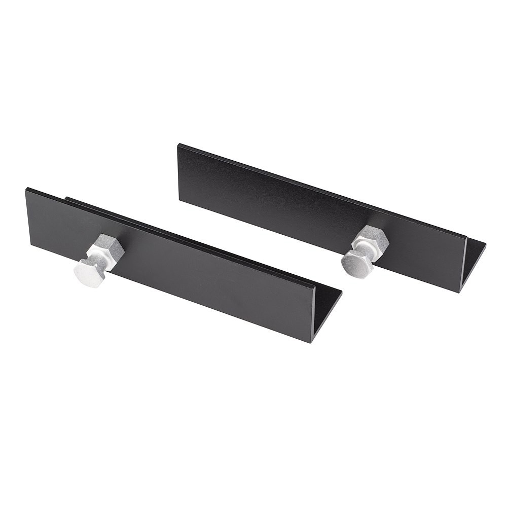 The Manfrotto 041 L-Bracket Set transforms any Super Clamp 035 into a rock-solid shelf support. Each black-anodized aluminum bracket features a 17 cm horizontal arm with 4 cm depth and a 16 mm hex stud that locks into the clamp’s anti-rotation socket. The 90° bend creates a stable ledge for glass, acrylic, or wooden panels up to 15 mm thick—perfect for product tables, light tents, or seamless backdrop shelves. At just 145 g per bracket, the pair enables fast, modular setups in photography studios, houses or e-commerce shoots needing customizable, clutter-free surfaces without permanent fixtures.
