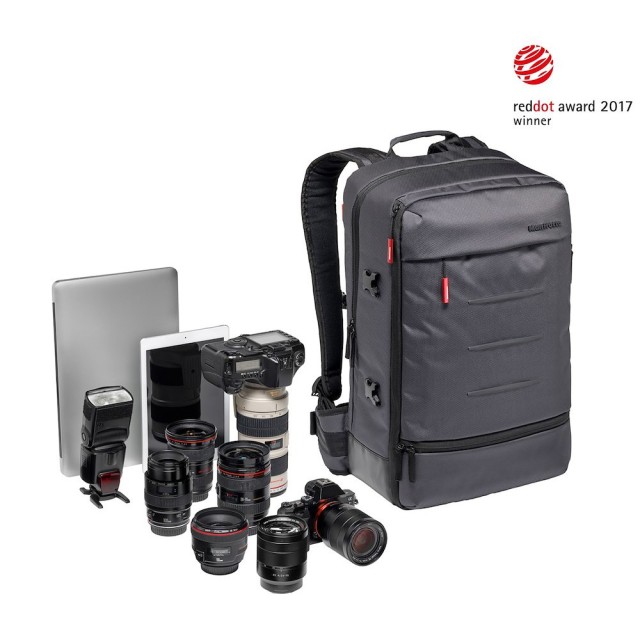 The Manfrotto Manhattan Mover-50 Camera Backpack is a versatile, protective backpack designed for city commuters and photographers on the move. Featuring the Flexy Camera Shell protection system and a removable internal insert, it safely accommodates DSLR or mirrorless cameras with multiple lenses, while offering dedicated storage for a laptop, tablet, tripod and personal items. Its stylish, urban design combines practicality, durability and easy access for everyday use.