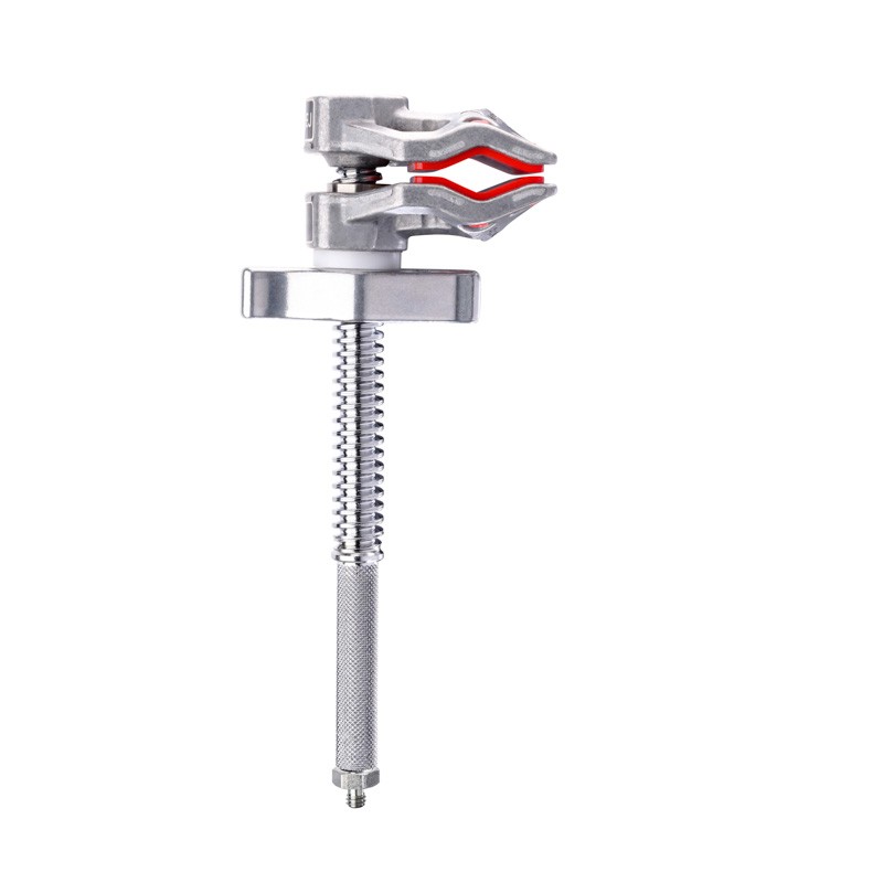 Small clamp with Micro end jaws with a maximum opening of 5 cm and a maximum load capacity of 25 kg. It features a fixed jaw at the end of the threaded rod and 1/4'' female thread as well as a 1/4'' to 1/4'' (male) adapter for easy mounting. Ideal for attaching to a C-stand or any other object (bicycle, pole...).