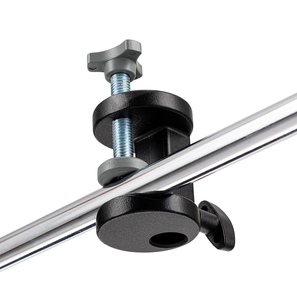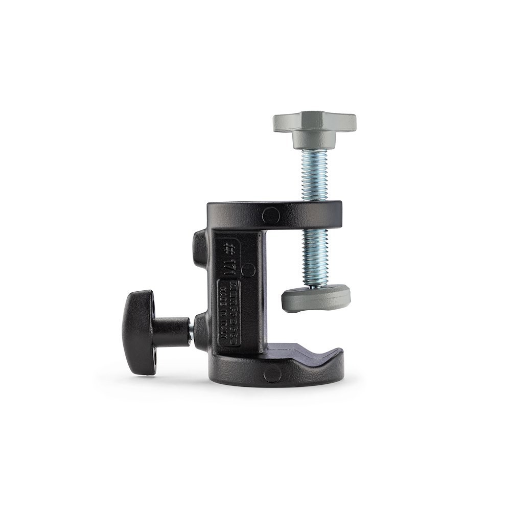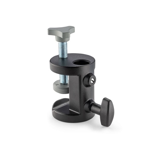The Manfrotto Mini Clamp (0.16 kg, black aluminum alloy) is an ultra-compact, studio-to-location essential that securely grips tubes from 5–35 mm and features a universal 5/8" (16 mm) Baby socket for instant mounting of lights, cameras, or accessories—no extra adapters needed—delivering rock-solid, vibration-free support in a pocketable form factor perfect for photographers who demand versatility, speed, and reliability without added weight or bulk.