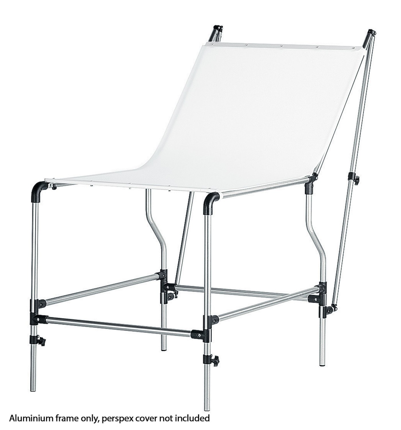 Built from chrome-plated steel, the table ensures long-lasting durability and reliable support. It features an adjustable tilting back panel and adjustable front legs, allowing photographers to fine-tune angles and lighting setups for seamless background transitions and controlled reflections.