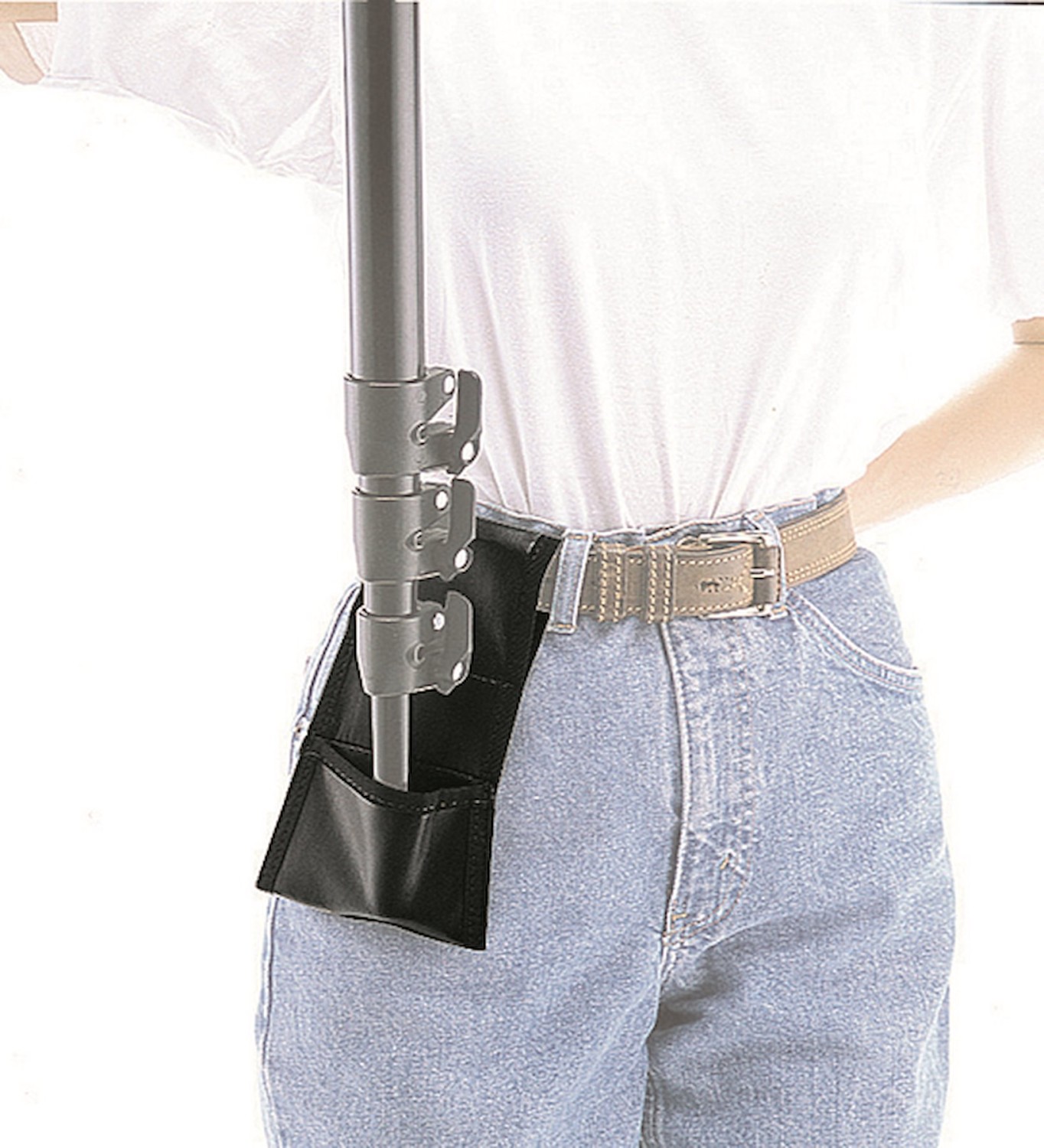 The Manfrotto 080 Monopod Belt Pouch is a lightweight, easy-to-use accessory worn on a belt, designed to support the base of a monopod for improved stability during shooting.