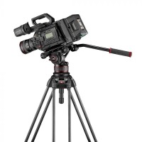 The video system includes a Manfrotto NITROTECH 608 Fluid Video Head and 645 Fast Twin Carbon tripod legs made of carbon fiber.
