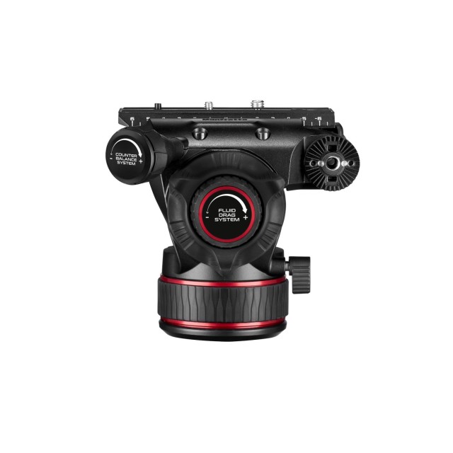 The head also features a 3/8" Easy Link connector equipped with anti-rotation systems to accommodate both Manfrotto arms equipped with anti-rotation systems and arms equipped with ARRI locating pins. So that an external monitor or other accessories can be safely installed. The lateral locking mechanism of the slide plate attachment allows for safe, quick and easy camera attachment. The NITROTECH head has a flat base mount with a standard 3/8" thread that is highly versatile for various support combinations (tripod, slider, jib or crane).