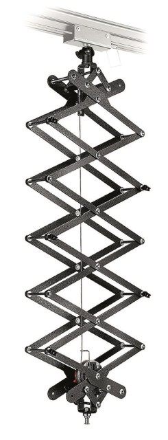 This is the Manfrotto FF3512N86 pantograph with steel cable. The pantograph is made of aluminum in accordance with DIN 15560-46. The mounts at both ends of the pantograph are 5/8" (16 mm) (upper female, lower male). The load capacity is ensured by a steel cable with a diameter of 2 mm. The pantograph extends from a closed length of 27 cm to a maximum length of 200 cm.